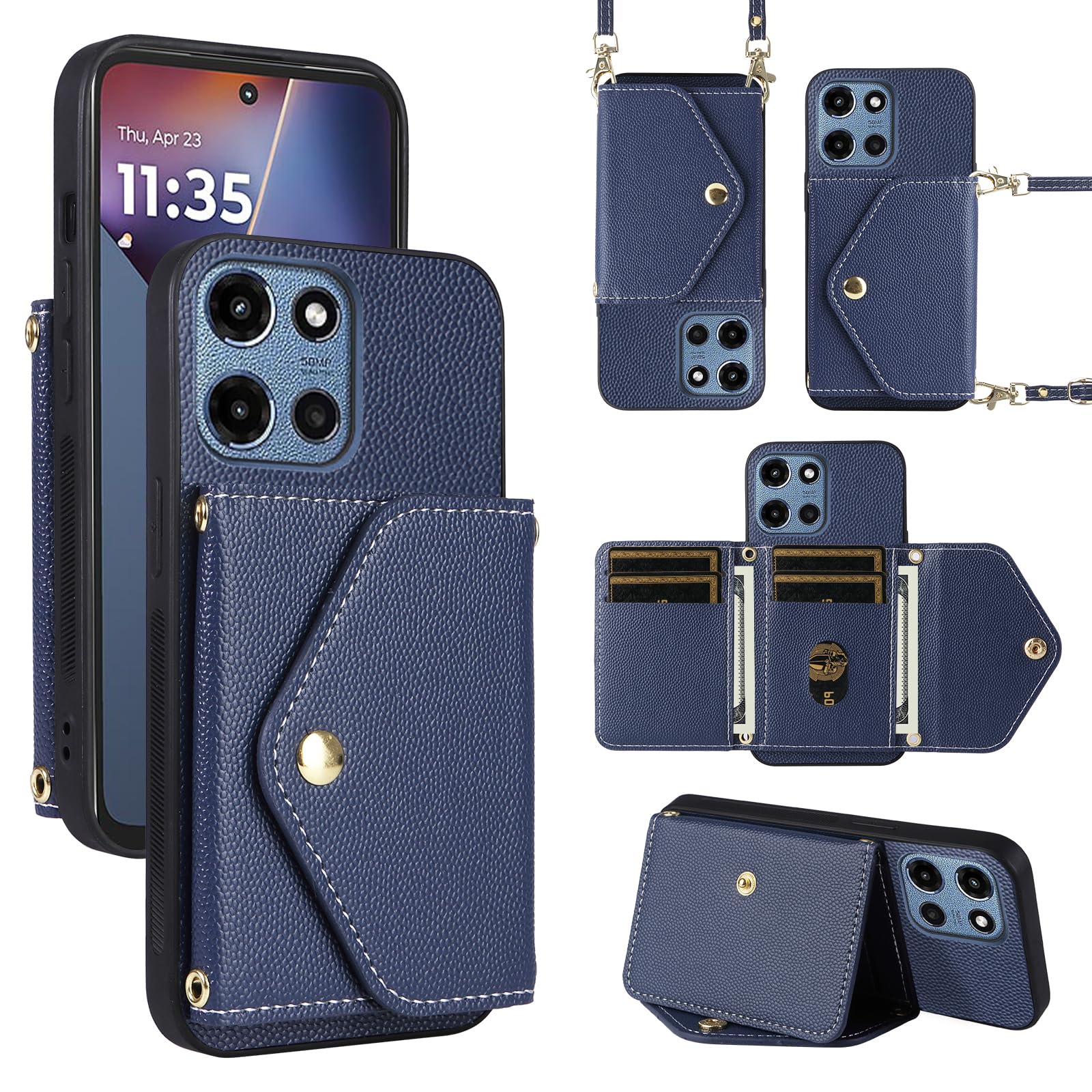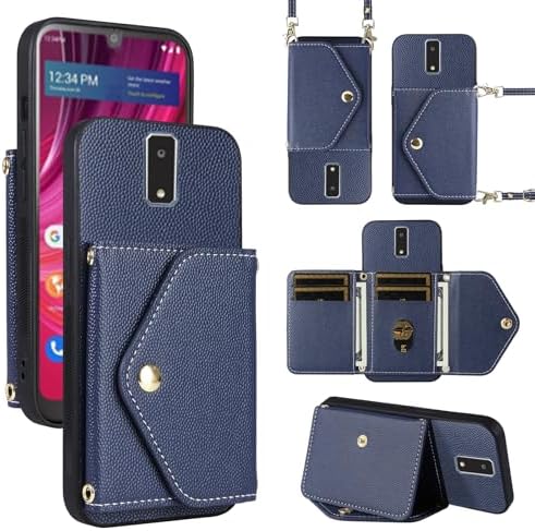 Minimalist Wallet Case for Tracfone BLU View 4 B135DL with Shoulder Strap,Thin Slim Flip Purse,Credit Card Holder Stand Accessories Cell Phone Cover for Blue View 2 2023 View4 135DL Blue
