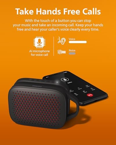PHILIPS S1209 Portable Bluetooth Speaker,Wireless Speakers with Extra Bass,Quality Sound,12 H Battery,TWS Pairing,Support Stereo Sound,Bluetooth 5.3,IPX4 Waterproof,for Indoor & Outdoor,Small,Black