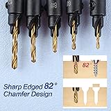 5Pcs Countersink Drill Bit Set for Wood Drill Bits for Holes Tapered Drill Bits Counter Sinker Drill Bit Set with Allen Wrench Pilot Screw Hole Set 82-Degree Chamfer Titanium Coated