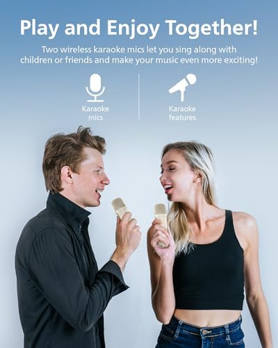 - FUN SINGING: This Bluetooth speaker lets you sing to your tunes. Two karaoke microphones let you join in with the singing and even add 6 different cool effects to your voice. Sing along with friends and make your music even more exciting!