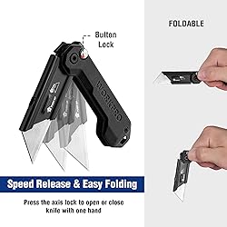 - WORKPRO EDC Folding Utility Knife, Mini Box Cutter with Quick Open Axis Lock, Quick Change Blade Razor Knife, Foldable Small Pocket Knife with Belt Clip