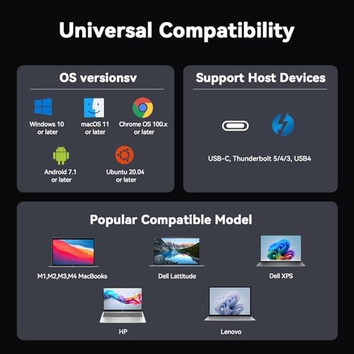 - Enhanced Compatibility- The DisplayLink docking station, designed for triple monitor setups, is highly adaptable, being compatible with Thunderbolt 5, Thunderbolt 4, Thunderbolt 3, USB4.0, and full-featured USB-C laptops. Whether you're a remote worker in need of a stable work environment, a business professional striving for high efficiency, a designer/editor deeply engaged in creativity, an analyst focusing on data, a gamer passionate about immersive experiences, a student balancing study and entertainment, a teacher emphasizing teaching efficiency, or an IT specialist requiring multi - device debugging - this docking station is the "super connector" of your device ecosystem.