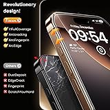 Zero Bubble Installation & 100% Automatic Dust Removal:No more complicated setups! With automatic positioning, dust removal, and adsorption, just place your iPhone 16 Pro Max in the mount, pull the strap, and slide the roller back and forth to complete the installation. Tip:Watch the online tutorial before starting for the best results 1:1 Full-Screen Coverage Design : Customized specifically for the iPhone 16 Pro Max , it features a specially designed 1:1 3D curved black edge that perfectly wraps around every curve of the screen. This design ensures a perfect fit with the phone's screen, leaving no corners uncovered and preventing dust and scratches from invading, while also being compatible with protective cases HD 100% Bare Screen Experience:This iPhone 16 Pro Max screen protector is made of optical-grade high-transparency material that faithfully reproduces the best visual feast brought by the iPhone screen. Additionally, thanks to the special fingerprint-resistant X-Silk coating technology, it effectively prevents fingerprints from sweat and oil, keeping your iPhone 16 Pro Max screen clean and new Military-Grade Drop Protection:Proudly boasting the most advanced triple ion exchange technology, this iPhone 16 Pro Max screen protector has a hardness level far exceeding 9H. This ensures that your Phone is fearless against any drops or impacts, providing the highest level of screen protection in any environment Revolutionary Innovative Auto Installation:This is the easiest method for installing iPhone 16 Pro Max screen protector available on the market to date. It features innovative automatic positioning, dust removal, and adsorption technology, making the installation a breeze within seconds. Simply align the frame on your phone, press and pull. With a success rate as high as 99.99%