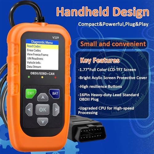 - DIAGNOSTIC FEATURES: Reads and clears check engine light codes, displays live sensor data, and provides code definitions for quick troubleshooting