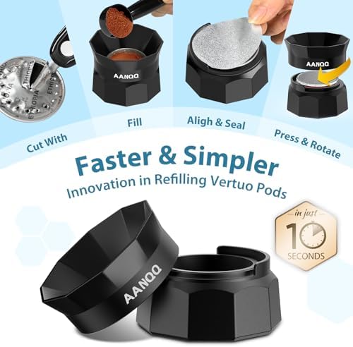 - All-in-One Kit for Easy Refilling: These nespresso accessories include a refillable Vertuo pod holder, 50 food-grade aluminum lids, a dual-ended spoon for filling and compacting, and a lid opener. Everything you need to refill your Vertuo capsules is included. No complicated steps, no mess, and enjoy the rich and aromatic coffee effortlessly(Pods not included)