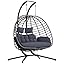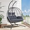 SWITTE Double Egg Swing Chair with Stand, Outdoor Patio 2 Person Hanging Wicker Hammock Chairs with Cushion for Indoor Bedroom, Lawn, Garden-Dark Grey