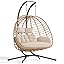 • Durable & Weather-Resistant: Built with a heavy-duty alloy steel frame and UV-resistant wicker, this double egg chair outdoor withstands various weather conditions. Whether it's sun, rain, or wind, the hanging double egg chair with stand offers durability year-round
