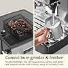 - Conical burr grinder features 16 grind settings from fine to coarse