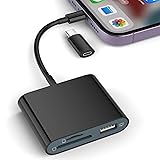 [Tool for photographer]: It is a Photography Accessories for Canon Nikon SLR Digital Camera. No App to be downloaded. 5 seconds after inserting the memory card and connecting with the iPhone, click 'Photos' APP and find 'Import', then import video and photos from memory card to your iPhone or iPad. [Accessories for iPhone with Dual Card Slots]: This SZHAIYIJIN Memory Card Reader for iPhone Support SD Card and TF Card, Secure Digital (Standard SD/SDHC) and Micro SD(TF) card. Do NOT Support Wi-Fi SD Memory card. [The Female USB Interface]: Lightning to USB adapter has the Female USB Interface is a OTG Camera Adapter for iPhone &iPad, supports Digital camera, SLR Camera, The USB camera adapter does not require an application, and there is no need to remove the camera's memory card. You Can also plug the USB Flash Drive, Card reader, USB Headphone, Electric Guitar, MIDI keyboard, etc. (The maximum current of the peripherals does not exceed 500 mA). Not Support the Printer and Hard disk drive. [Dual Connector Design]:The SD Card Adapter offers dual compatibility with USB-C and Light-ning ports (includes a detachable USB-C to Light-ning adapter). Simply plug the USB-C connector into modern devices like iPhone 16,iPhone 15, iPad Pro, Mac, Android phones, or PCs, or attach the Lightning adapter for older Apple devices. This versatile setup enables seamless cross-platform data transfers — move photos, videos, and files between iOS, Android, Windows, and macOS systems with full OTG support. [Two-way Transfer]: Two-way transfer suitable for iOS 13 -18 device. Import data from SD/TF card to iPhone/iPad, or export the file from iPhone/iPad to SD/TF card. Include Movies, Music, Word, Power point, Excel, PDF, etc. [High Speed Data Transfer]: Support fast transfers standard photo formats, including JPEG, RAW, along with SD and HD video formats, including H.264 and MPEG-4. Easily and quickly transfer photos/videos to device and share images/videos of your camera to social media anywhere.