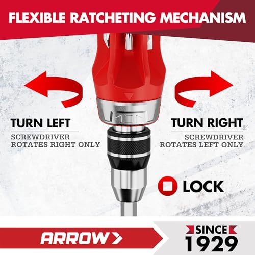 ARROW Ratcheting Screwdriver, 12-IN-1 Multi Bit Ratchet Screwdriver set, Premium S2 Steel Screw Drivers, Innovated Bits Quick-Load Mechanism, with Phillips, Slotted, Torx, Square Bits Stored in Handle