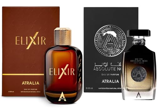Atralia Elixir Eau De Parfum for Men And Atralia Absolute Noir Eau De Parfum for Men 100Ml 3.4Oz Bundle - Luxurious and Long Lasting Fragrances Best Alternative for Le Male and Absolu Aventus