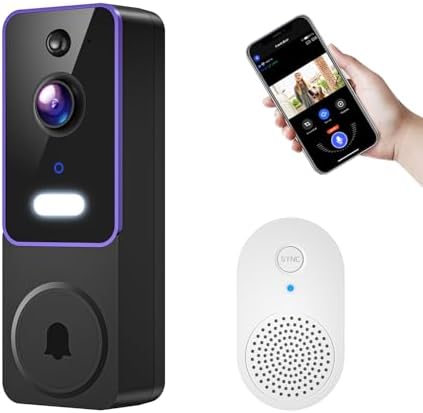 1080p Wireless Video Doorbell Camera with Doorbell Receiver, Color Night Vision, 2-Way Talk, AI Human Detection and Alerts, 2.4G WiFi Only, Battery Powered, Cloud Storage (Sold Separately)