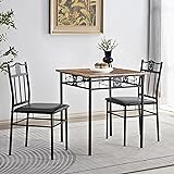 Metal [Compact 3-Piece Dining Set for Two] - This modern dining set includes a wood-top table and two chairs that conveniently tuck under the table to save space. The high-back design ensures easy pull-out access, making it perfect for cozy meals with a loved one or small gatherings. Ideal for apartments, kitchens, or dining nooks! [Durable & Easy to Maintain] - Crafted with a sturdy steel tube frame and a composite wood tabletop, this set is built to last. The smooth surface resists stains and scratches, making cleanup a breeze—just wipe it down in seconds to keep it looking like new. [Comfortable Dining Experience] - With soft PU padded tops and metal frames, the 2 chairs have nice high backs that conform to your body, making this kitchen table set a comfortable addition to any dining room. Each chair has a capacity of 275 lbs. [Quick & Easy Assembly] - No need to stress about setup! With all parts, tools, and step-by-step instructions included, assembling this dining table set is hassle-free. You'll have it ready to use in no time! [We're Here for You] - VECELO provides 30-day FREE RETURN and 24-MONTH Warranty for every dining table we sell. If there are any problems with the product you received, please contact us to get free parts or a BRAND NEW item for replacement.