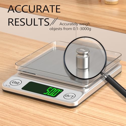 - 1.Precision Measurement: This kitchen scale measures with precision up to 0.1g, perfect for weighing medicine, flavorings, jewelry, baking, and cooking. It helps you maintain a healthy life through accurate portion control
