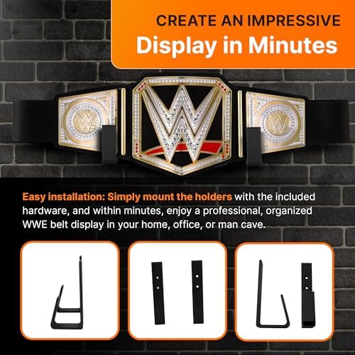- EASY TO INSTALL & VERSATILE USE – These wall-mounted belt organizers are user-friendly and include all necessary hardware for quick installation. Ideal for creating an impressive WWE belt wall mount display in minutes, perfect for homes, offices, or man caves.