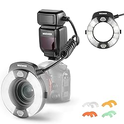 【Macro Ring Flash Compatible with Sony】 RF1-S macro ring flash light is compatible with Sony cameras, lighting equipment for plants, insect photos, studio accessories photoshoot, and other macro photography subjects. 80° wide flash coverage from all angles can evenly brighten the subjects, minimize harsh shadows, and avoid vignetting. At 13oz/368g, this compact and lightweight flash ring is applicable in all situations, wide or narrow 【3 Flash Modes & Independent Flash Tubes】 TTL mode automatically gets correct exposure; M mode supports 1/1 -1/128 adjustable manual flash output; MULTI mode offers creative stroboscopic flashes. A/B flash tubes are independently and collectively controllable. In TTL/M modes, the 8:1-1:1-1:8 flash ratio is adjustable in 1/2 stops for fine tuning the image contrast 【Powerful Output with Advanced Functions】 The macro flash features 76Ws output, GN15 guide number (ISO100, 1M), exposure compensation, exposure bracketing, flash lock, front/rear curtain sync, a PC sync jack, and other functions. Powered by 4x AA battery, the flash ring supports 1/400-1/19300s flash duration, 0.1-2.7s recycling time, and 100-1500 flashes, or connect the flash to an external power source via the CP-E4 port to speed up recycling time.Requires 1.5V high-drain rechargeable or alkaline batteries for power supply. 【Assist Focus Lights & Concise LCD Screen】 Two 0.59W assist focus lights allow 10 brightness levels that help you instantly focus in dim environments. The LCD screen offers a concise UI for simple reference and adjustment. Customizable functions include auto sleep, buzz, LCD backlight duration, LCD screen contrast, and more 【4 Color Gel Filters & 8 Lens Adapter Rings】 White, red, green, and yellow color gel filters help you shoot atmospheric and artistic macro photography. 8 adapter rings are suitable for camera lenses with 49/52/55/58/62/67/72/77mm filter threads as content creator essential gear and influencer must have