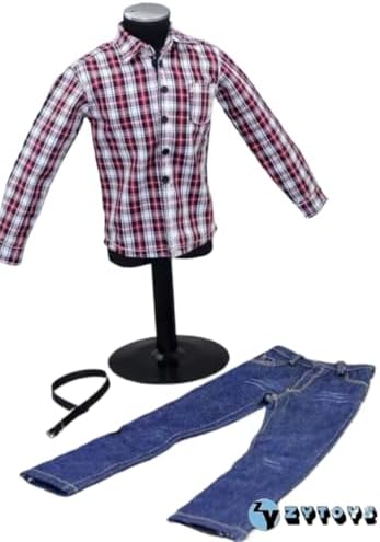 (ONLY CLOTHES) 1/6 Scale Male Soldier Plaid Shirt+ Jeans Model for 12'' Figure
