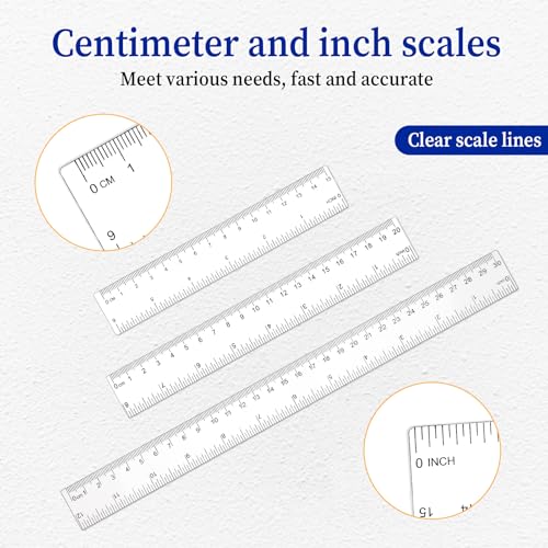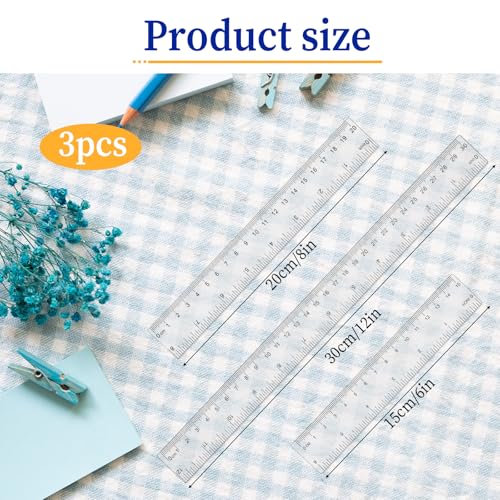 - 3 Pack Plastic Clear Ruler: The package includes 3 plastic ruler 6 inch 8 inch 12 inch, each with dimensions of 30 mm in width, and 0.3 cm in thickness. Our small ruler is designed to provide accurate measurements within a 6 inch/15 cm, 8 inch/20 cm, and 12 inch/30 cm range