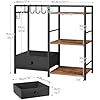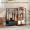 HOOBRO 3-Tier Purse Organizer for Closet, Multi-Functional Purse Rack with 6 Hooks, Floor Standing Handbag Storage Rack with Drawer, for Cloakroom, Foyer, Bedroom, Black and Rustic Brown BF28CJ01