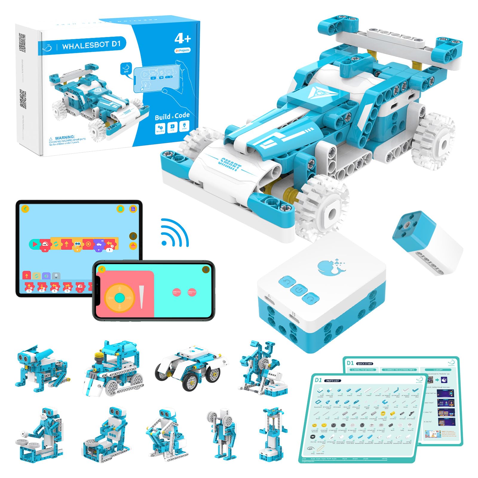 WhalesBot C3 Pro 12-in-1 Remote Control & Coding Robot Kit for Kids 4+, Advanced Smart Panel & Cards Programming, Educational STEM Toy, Block Building Set with Controller & Motor for Kids 4-6, 5-7