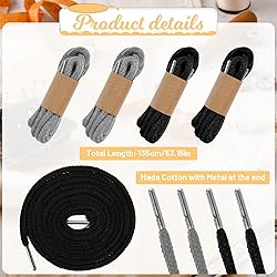 Package Includes: 4 pieces replacement drawstrings in black and gray, 1 piece easy threaders, enough quantity, and various colors. With each drawstring measuring approximately 53 inches/135 cm in length, they offer ample size for diverse clothing needs, making them suitable for daily use and various types of clothing repairs Material: The replacement drawstrings are made of cotton, breathable, soft, lightweight and durable, not easy to break, quality drawstrings for long time of use, the string end is sealed by metal which is easy for you to thread and use Comes with Easy Threaders: This drawstring replacement set comes with an easy threader, plastic elastic threaders approx. 58 cm/ 22.8 inches in length, designed for ease of use with their flexible plastic constructions Method of using: thread the string into the larger eye or small eye according to the thickness, fix it and then insert the threader into your clothes until the complete string pass through Applications: suitable for yoga pants, exercise suits, coats, sweatpants, shoes, hats, etc. The easy threader can also help a lot for threading strings or ropes in daily life