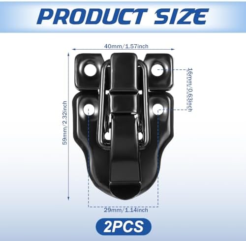 - Dimensions: The total size of the buckle latch is 2.32 x 1.57 inches, with the toggle hook measuring 1.73 x 1.57 inches and the anchor part 0.43 x 1.57 inches. This design is well-suited for replacing most hasp latches on wooden boxes.