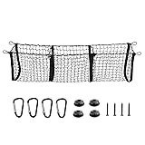 Adjustable Cargo Net is the perfect accessory for your car's trunk, providing a secure and organized solution for all your cargo needs. Note: Please make sure the size before purchasing. BIG CAPACITY - Measuring at 43.5x11.8x11.8 inches, this high-quality cargo net is made with double mesh for superior durability and firmness, ensuring that your items are tightly secured during transportation. PROVIDE MORE SPACE - With its stretchable design and great elasticity, this cargo net can easily expand to accommodate larger items, while still providing a snug and secure fit. EASY INSTALLATION - The Truck Bed Storage Net comes with 4 self-locking Metal hooks, This versatile cargo net is specifically designed for car, making it the ideal automotive cargo net for all your traveling needs. KEEP YOUR CARGO IN PLACE - Say goodbye to messy trunks and hello to a clean and organized space with the BAILALIBO Cargo Net. Get yours today and experience the convenience and peace of mind that comes with a reliable trunk netting solution.