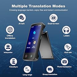 Dual-Screen Design for Real-Time Conversations: Experience seamless communication with an innovative dual-screen setup — both users can view translated text simultaneously without passing the iTour D-pro language translator device. Just connect your handheld translator to WiFi or hotspot to use. Choose from AI talk, Dual-screen, or Listen modes(Three mode: Fast, Smooth, and Accurate for choose)to fit your conversation style. Hands-free listening mode available Real-Time Online Translation with 139 Languages: Built with AI translation engine and globally deployed servers, enjoy ultra-fast translations in 0.5 seconds with 98% accuracy. The bilingual real-time translator translate effortlessly across 139 languages from over 200 countries. Tap and speak in your native language. Enjoy instant voice translation, with clear playback, 100% subscription-free Detachable Screens for Long-Distance Translation: The world's first detachable dual-screen translator. The AI translator a 5-inch main unit and a 3.1-inch sub-unit that work wirelessly up to 1.5 meters apart. Tap to speak, and each screen will auto-play the translation aloud in the listener's language. The translator devices are ideal for business meetings, language learning, or travel Pocket Offline Voice Translator – 17 Languages: Your perfect travel companion. Compact, lightweight, and powered by an AI translation engine, it delivers fast, accurate translations in 17 popular languages — no internet required. Just press and speak — it works anytime, anywhere Photo Translation with 5MP Camera: The translator devices are built-in 5MP camera supports image and text translation in 75 languages online and 41 languages offline. The translator instantly translate signs, menus, maps, and documents. Just snap and understand — perfect for international travel or study abroad Smart Translation Features for Every Scenario: The D-pro dual screen language translator includes voice-to-text transcription, group chat translation via QR scan, multi-device group mode for remote multilingual meetings, and smart recording with automatic translation and storage — perfect for lectures or business discussions Even More Features: The pocket translator also includes a world clock, real-time currency exchange, language learning tools, and offline downloads—giving you extra value wherever you go. The main and sub devices have 16GB and 8GB of storage. With a 2000mAh battery, it runs up to 6 hours nonstop and lasts up to 264 hours on standby Perfect Gift Choice: With an dual screen and lightweight design, the iTour translator device provide exceptional comfort for long-term use, making them the perfect companion for travel, business, or study. The voice translator device makes an ideal gift for women men; perfect for birthdays, Halloween, Christmas, Thanksgiving, holidays, or special occasions