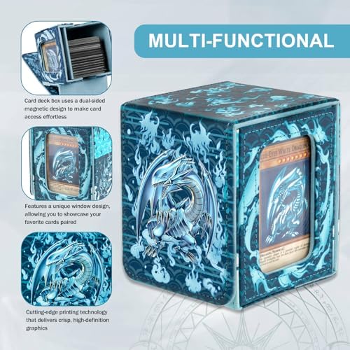 - Novel Design:Deck Box features a unique window design, allowing you to showcase your favorite cards paired with our Card Holder for a personalized display. Included with the box is a Sky Dragon laser decoration card. Also included is a acrylic card divider. Please note that the card divider has protective plastic film on both sides, which should be peeled off before use.