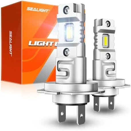 - 【Safe and Ideal Beam Pattern】: Sealight H7 light bulbs offer perfect light focus, reducing glare for oncoming drivers. The 0.03-inch ultra-slim design aligns the chips closer, creating a sharply focused light without dark spots or shadows, ensuring a wider and farther view for safer night driving.