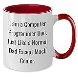 - Are you a Computer Programmer Dad enthusiast or searching for a unique gift for the Computer Programmer Dad in your life? Look no further! This delightful Two Tone Coffee Mug features a funny quote 'I Am A Computer Programmer Dad. Just Like A Normal Dad Except Much Cooler.' that will surely bring a smile to any Computer Programmer Dad's face. Each mug is carefully crafted from ceramic, ensuring a premium quality drinkware that is both microwave and dishwasher safe. The two-tone color combinations - Black and White, Red and White, Navy and White, and Pink and White - add a touch of elegance to any room. This thoughtful gift is perfect for Valentine's, a birthday, or any special occasion where you want to show your love and appreciation for the Computer Programmer Dad. Whether you're the sender or recipient, this mug will undoubtedly become a treasured keepsake. Treat the special Computer Programmer Dad in your life to a one-of-a-kind gift that will make their heart sing. Get your Two Tone Coffee Mug today and make some unforgettable memories!
