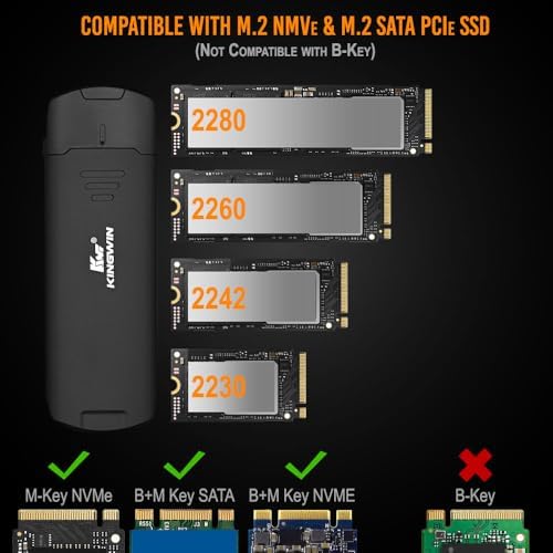 - ✅ Wide NVMe SSD Compatibility: Supports M-Key and B+M Key NVMe PCIe SSDs in multiple form factors (2230, 2242, 2260, 2280). Not compatible with SATA M.2 SSDs – optimized for NVMe performance.