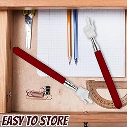 【 High-Quality Teacher Pointer】The pointer finger is made of high-quality stainless steel, silicone, and plastic, which is comfortable to hold and can be used for a long time. The silicone handle is non-slip, which is comfortable to grip; the stainless steel handle is strong and not easy to break, and it will not loosen when fully opened; Plastic fingers will not hurt your blackboard or whiteboard. 【Retractable Handle】The retractable design of the teacher pointer makes the pointer easy to store and carry. The length of the hand pointer can be adjusted according to the needs, the longest can be stretched to 55cm/21.7in, and the shortest can be shrunk to 17cm/6.7in. When not in use, shrink it to the shortest point and place it on a drawer or table, it will not take up too much space for you. 【Cute Finger Shapes】The teacher pointers for classroom is a great teacher teaching tool. The top fingertips are smooth and round, and will not damage your blackboard or whiteboard. The cute finger shape design of the classroom pointer is very interesting and eye-catching, especially attracting attention, making them more focused on the classroom, and improving learning efficiency. 【Wide Applications】You can give this pointer stick to your teachers, and they will love it, it can effectively point out key information and keep up with their learning progress. The finger pointer stick is suitable for teacher teaching, speeches, seminars, tour guides, training meetings, lectures, museum explanations, etc. 【Package Include】You will receive a 2 pcs red pointer for classroom, enough for your use and replacement needs. If you find any problem with our extendable pointer, please contact us in time, we will provide you with a reasonable solution.