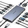 USB C Docking Station Dual Monitor for Dell/HP/Lenovo/Surface Laptop,15 in 1 Triple Display Multiport Adapter Hub, USBC Dock Dongle with 2 HDMI+VGA+6 USB C/A+Button+100W PD +Ethernet+SD/TF+Audio