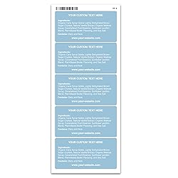- Create your own custom nutrition ingredients labels with these 2" x 4" self-adhesive paper stickers. Perfect for candles, jars, bottles, and small businesses, these personalized labels let you add custom text and choose your color for a professional look. Available in quantities from 20 to 5,000, they’re easy to apply—just peel and stick! Proudly made in Michigan, these labels are a practical and stylish way to showcase your products.