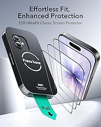 Compatibility: only for iPhone 17/iPhone 16 Pro UltraFit in a Flash: includes a cleaning kit and an UltraFit tray for the screen protector (read instructions before use), for a quick and easy, bubble-free application every time Bubble and Dust-Free: advanced nano adhesive technology guarantees a perfect fit with no bubbles or dust, while maintaining crystal-clear screen quality Military-Grade Defense: ultra-tough tempered glass withstands up to 33 lbs of pressure, protecting your screen from drops, bumps, and scratches In the Box: ESR screen protectors (3 pack, only for iPhone 17 and iPhone 16 Pro), UltraFit tray, cleaning kit, and manual Complete Customer Support: detailed setup videos and FAQs, comprehensive 12-month protection plan, lifetime support, and personalized help.