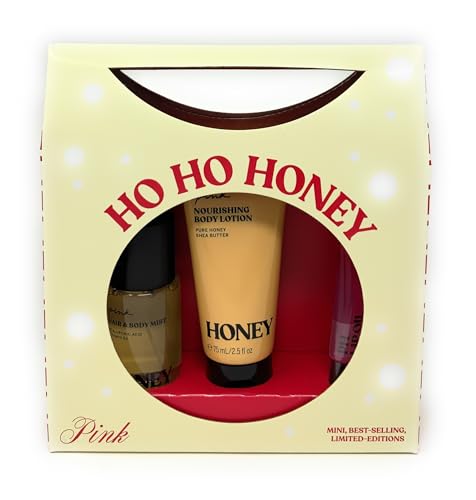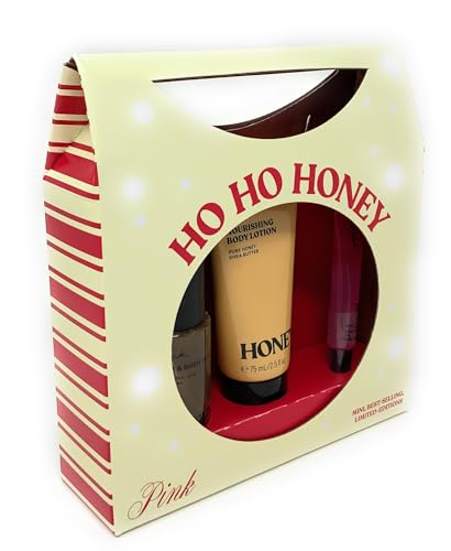 VS PINK 3pc gift set. This gift set is best- selling limited editions. This set incude: Honey hair body mist and nourishing body lotion each item is 2.5 fl oz plus Ph Lip oil .34 fl oz. Great to carry in your purse or travel with your favorite essentials.