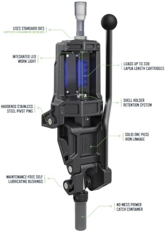 - INNOVATIVE: Featuring integrated LED work lights, an anti-rotation shell holder retainer, and a fully contained primer catch system to streamline the reloading process.