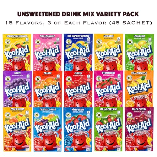 Classic Drink Mix Packets Variety 45 Pack- Includes 3 Mix Packets Each of 15 Flavors- Cherry, Lemonade, Orange, Tropical Punch, Black Cherry, Peach Mango, Pink Lemonade, Strawberry Kiwi, and More