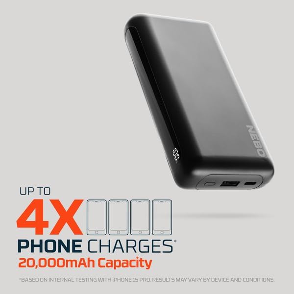 NEBO 20K 20000mAh Power Bank | 74Wh Capacity, 2-Way Output Charging, Durable USB & USB-C Ports, Portable iPhone & Android Phone Charger, TSA Approved Travel Essential