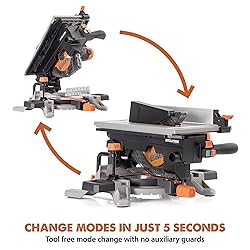 2-IN-1 CONVERTIBLE MITER/TABLE SAW – The Evolution R8MTS combines a compound miter saw and table saw in one compact design, ideal for tight workspaces, home workshops, and DIY projects. Easily switch between modes with simple locking pins for versatile cutting. MULTI-MATERIAL CUTTING – Cuts wood, plastic, mild steel, aluminum, and composites with a single TCT blade. Delivers fine-finish cuts in hardwood, burr-free cuts in steel, and safe cuts through reclaimed wood with embedded nails—no blade changes needed. PRECISE & ACCURATE – Features a 0-45º bevel and 45º left to 45º right miter range with pre-set stops for quick, accurate adjustments. The cast aluminum table top ensures a flat cutting surface, while the dual-locking rip fence and thin-kerf blade provide clean, precise cuts. ADVANCED SAFETY FEATURES – An innovative blade guard stays covered until contact, keeping the blade concealed in miter and table saw modes. A riving knife and table saw blade guard reduce kickback, while dust extraction ports maintain a clean workspace. POWERFUL & COMPACT – A high-torque 12A motor powers through tough materials. The 4-3/4” x 2-3/16” crosscut capacity in miter mode and 1-1/2” rip capacity in table mode make it ideal for job sites, workshops, and DIY projects. Its lightweight, space-saving design ensures easy transport and storage.
