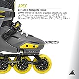 - Apex is a high-performance urban and freestyle skate for kids. The molded, vented shell paired with a Premium Jr. liner provides exceptional protection and support. The frame that allows for a 3 or 4 wheel set up. Lateral slider plates, a secure buckle closure system and frame length paired with corresponding matte-black finished wheels ensure ideal maneuverability. These skates adjust up to four sizes to accommodate kid's growing feet. The brake is included, but optional.