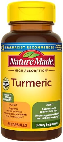 • Muscle and joint support supplement: contains one 30 count bottle of Nature Made High Absorption (1) Turmeric Capsules for a 30-day supply