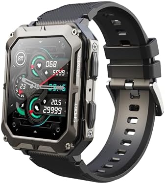 Gravity C20 Pro 1.83" Rugged Smartwatch, IP68 Waterproof, Bluetooth Call, AI Voice, 100+ Sports Modes, Heart Rate & Sleep Monitoring, Shockproof, Fitness Tracker for iOS & Android (Black)