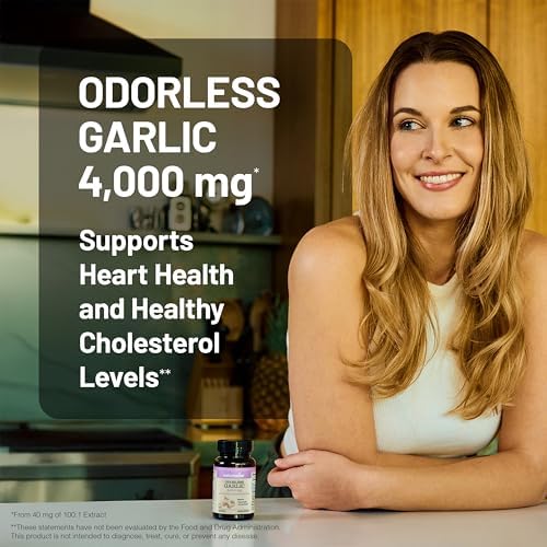 NatureWise Odorless Garlic Supplement 4000mg - Ultra Potent 100:1 Extract - Healthy Cholesterol Formula, Heart Health Support - Non-GMO, Gluten Free, with Halal Gelatin - 60 Count[30-Day Supply]