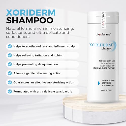 - 🔵【 INDICATIONS 】: Xoriderm Shampoo is a delicate shampoo specificaly indicated in presence of Psoriasis and Atopic Dermatitis of the scalp. Thanks to its natural formula rich in moisturizing, ultra-gentle surfactants and conditioners it performs their action without being aggressive on the hair and the scalp. It provides relief from itch, redness, irritation and desquamation of the scalp.