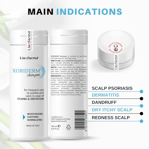 Licofarma Xoriderm Shampoo Psoriasis, Dermatitis and Dandruff Shampoo | Natural Treatment for Dry, Itchy, Flaky and Red Scalp | 5.07 fl oz