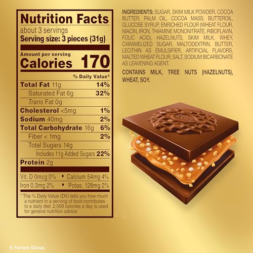 - PERFECT FOR SHARING: Whether at a casual gathering, book club or hosting with friends, family, or colleagues, Ferrero Rocher Caramel Hazelnut chocolate squares are the ideal indulgence to celebrate and create special moments