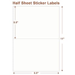 【Specification】: 8.5 inch x 5.5 inch (length X width), Half Sheet Labels, 2 Labels per Sheet, Totally 25 Sheets , 50 Labels. 【Compatibility】: Labels stickers are compatible with most inkjet printers and laser printers. Standard 8.5" X 11" paper size (US Letter Size) that passes easily and smoothly through your printer, preventing misalignment and paper jams. 【Easy to use】: Easy to peel labels off, just bend the sheet to expose the pop up edge.Labels remove quickly and easily. Matte white surface is similar to writing paper. you can write on it with pens, pencils or markers. 【Self Adhesive】: Our shipping labels for printer has a strong adhesive and will not easily fall off when attached to shipping express boxes and other areas that require label paper, making it durable. 【 You can DIY it 】: Self -Adhesive stickers can be used as mailing labels, address labels, FBA labels, return address labels, name labels, shipping labels, folder labels, bottle labels, barcode labels, gift labels, food container labels, etc. and can be used for diversified DIY according to your needs.