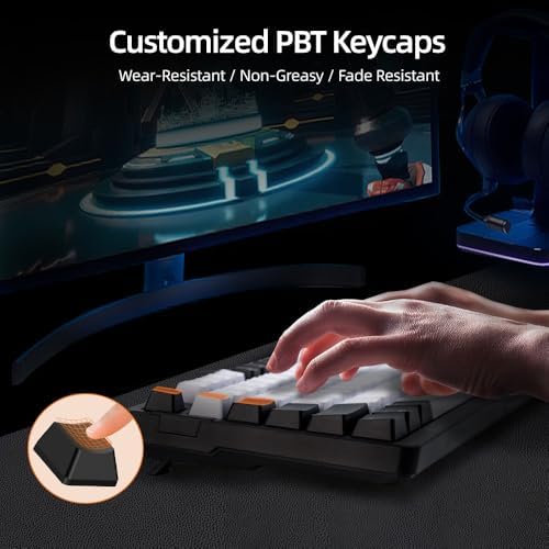 - 🔑 Durable PBT Keycaps The gaming keyboard is equipped with premium PBT keycaps that provide superior durability and a textured feel. They resist wear, fading, and shine over time while complementing the creamy or clicky feel of your switches, ensuring a consistent high-quality typing experience.